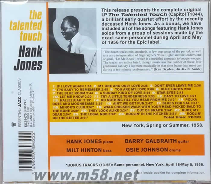 5. HANK JONES( A)- 爵士鋼琴四重奏Talented Touch 天才之觸(爵士大師五星系列) EJC55475