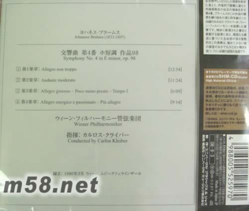 1.交響曲 第4番 ホ短調 作品98 第1楽章:Allegro non troppo(12:54) 2.交響曲 第4番 ホ短調 作品98 第2楽章:Andante moderato(11:22) 3.交響曲 第4番 ホ短調 作品98 第3楽章:Allegro giocoso-Poco meno pr(6:07) 4.交響曲 第4番 ホ短調 作品98 第4楽章:Allegro energico e passionat(9:15)