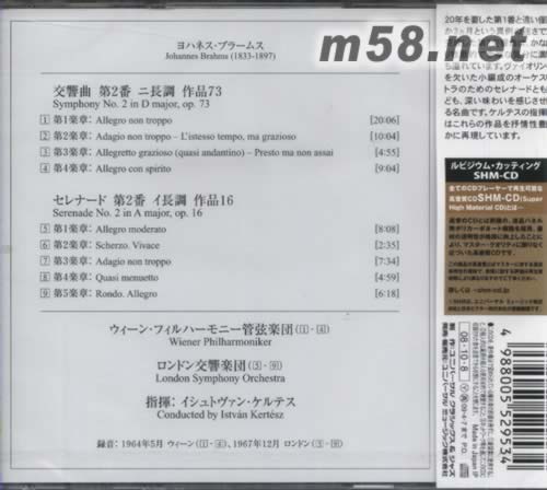 布拉姆斯 第二交響曲 第二小夜曲 KERTESZ指揮(SHM-CD 日本版)(m58.net) 指揮:ISTVAN KERTESZ 錄音于:1964、1967年