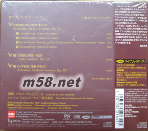 勃拉姆斯 D大調(diào)第二號交響曲 Brahms Symphony No.2 in D SACD (日本精裝限量版)專輯背面圖片