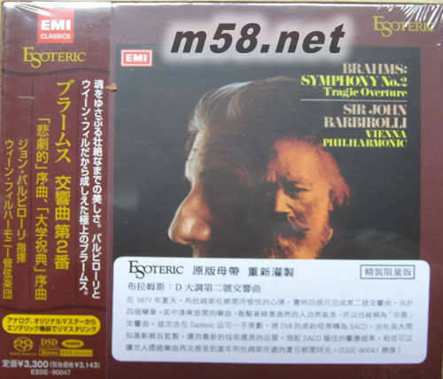 價格為估,以實到貨為準! 勃拉姆斯 D大調(diào)第二號交響曲 Brahms Symphony No.2 in D SACD (日本精裝限量版)(m58.net) 指揮:JOHN BARBIROLLI 在1877年夏天,布拉姆斯在鄉(xiāng)間用愉悅的心情,費時四個月完成第二號交響曲,共計四個樂章。其中清爽悠閑的樂曲,散發(fā)著綠意盎然的人自然氣氛,所以也被稱為田園交響曲。由在ESOTARIC公司一手策劃,將EMI的原始母帶轉(zhuǎn)為SACD,由神長大問知基彰親自監(jiān)制,運用最新的技術(shù)還原的品質(zhì),搭配SACD極佳的響應(yīng)頻率,相信可以讓世人透過樂曲再次感受到當年布拉姆斯所處的夏日鄉(xiāng)間時光。
