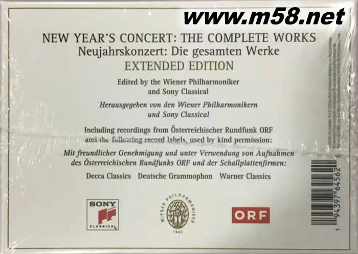 維也納新年音樂會套裝專輯2020版 慶祝古典音樂75周年(26CD 大套裝)(m58.net) 慶祝古典音樂75周年 索尼古典音樂公司在2015年發布了所有作品的完整版本 維也納愛樂樂團的新年音樂會。在“金色大廳”演出 在1941年至2015年間的博物館中,發布了標志性的現場表演 次放在一盒23張的光盤里?,F在,在2020年,這個版本 將提供26張光盤的擴展版本,包括所有新曲目 在另外三張光盤上編輯。 這項的傳統始于1941年元旦, 奧地利指揮家克萊門斯·克勞斯舉辦了一場全施特勞斯家族的音樂會 直到他在1954年去世——除了1946-47年,約瑟夫·克里普斯取代了他的位置—— 克勞斯塑造了音樂會的形象。那些年它只在電臺播出。 在克勞斯的繼任者,愛樂樂團首席小提琴手威利·博斯科夫斯基的領導下 手拿小提琴站著指揮這場音樂會不下25次 正如約翰·施特勞斯自己所做的那樣,電視廣播開始了,很快 成為全世界觀眾喜愛的活動。