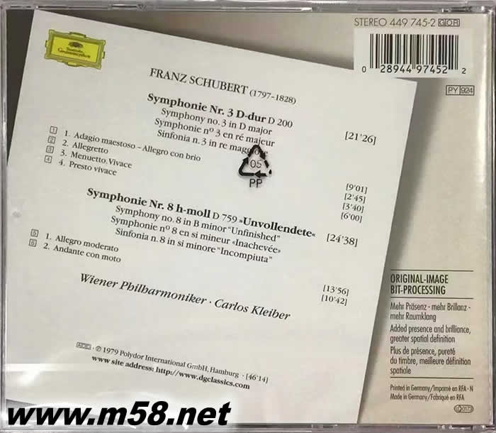 舒伯特:第3 & 8交響曲 Carlos Kleiber - Schubert: Symphonies Nos. 3 & 8 大禾花版專輯背面圖片