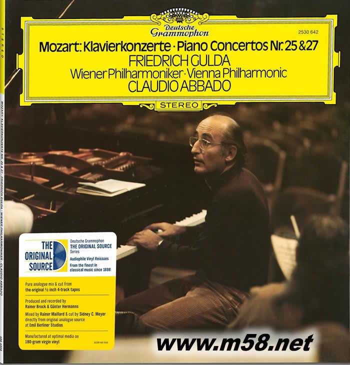 Mozart: Piano Concertos No. 25 I. Allegro maestoso (Cadenza: Gulda) II. Andante III. Allegretto Mozart: Piano Concertos No. 27 I. Allegro II. Larghetto III. Allegro (Cadenzas: Mozart; Gulda; Mozart)