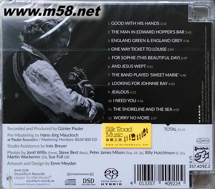 01. Good With His Hands 手中的善意 02. The Man In Edward Hopper’s Bar 愛德華霍普酒吧的男人 03. England Green & England Grey 英國綠與英國灰 04. One Way Ticket To Louise 去路易斯的單程票 05. For Sophie (This Beautiful Day) 給蘇菲 06. And Jesus Wept 耶穌也哭泣 07. The Band Played ‘Sweet Marie’樂團(tuán)表演「甜美瑪莉」 08. Looking For Johnnie Ray 尋找強(qiáng)尼瑞 09. Jealous 忌妒 10. I Need You 我需要你 11. The Shoreline And The Sea 海岸與海洋 12. Worry No More 不再擔(dān)心