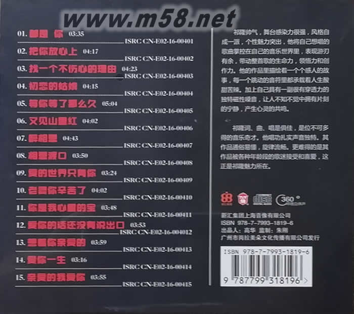 把你放心上(m58.net) 內地實力唱作歌手、音樂人,憑自己超強的音樂天賦創造了獨特的 祁式音樂 風格,廣東音樂流行協會會員,北京隆娛文化傳媒有限公司的創始人!2012年以勢不可擋的力量席卷內地整個流行音樂樂壇,拿下2012華語音樂流行榜內地最佳詞曲獎,一舉成為現今唱片市場的寵兒 2015年,參加央視節目《向幸福出發》個人專訪被譽為“親民歌王”,5月6日,發行專輯《隆行天下》,5月16日,在菏澤演武樓舉行全國個人巡回演唱會,10月23日,舉辦《同學寄》新歌發布歌友會 。 2016年1月14日,《唱著情歌流著淚》獲酷狗繁星年度盛典奪年度十大金曲獎,1月21日,發行單曲《找一個不傷心的理由》,3月9日,發行專輯《初戀的姑娘》 ,7月28日,發行專輯《惦記》 。 2017年1月11號,發行親情專輯《老父親》 [16] ,4月30日,在東莞舉辦全國巡回演唱會,5月31日,發行專輯《人生路》,8月22日,發行數字專輯《一起走過的》 。 2018年1月1日,發行單曲《雨中的思念》 ,2月1日,發行對唱單曲《謝謝最親愛的你》。