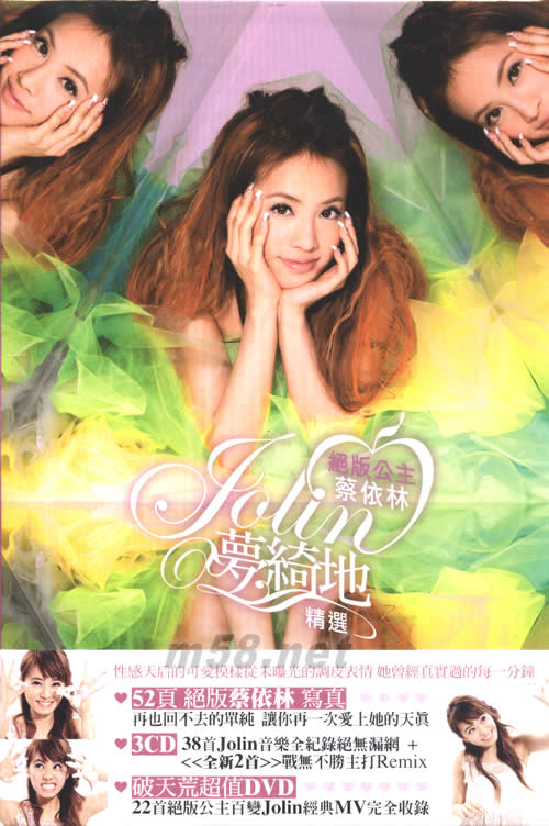 絕版公主夢綺地精選(精美禮盒裝)(m58.net) 尺寸:28*19*2CM *52頁絕版蔡依林寫真 *3參38首JOLIN 音樂全記錄絕無漏網+全新2首戰無不勝主打REMIX *破開荒超值DVD 22首絕版公主百變JOLN經典MV完全收錄