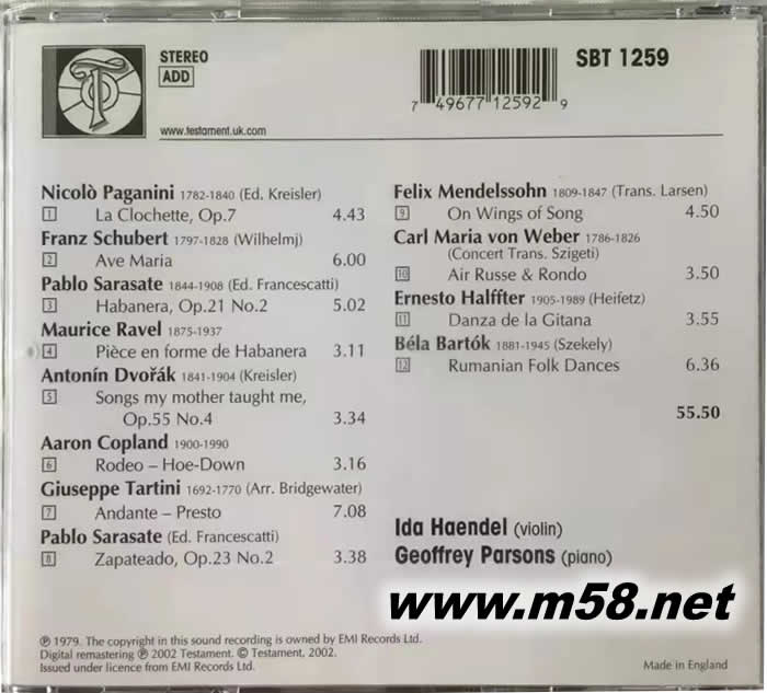 Popular Encores(m58.net) 小提琴女杰傳奇名盤 1982年獲得西貝流士獎,唯一一位在“文革”期間來華訪問演出的西方職業獨奏家 EMI原廠立體聲音源;英國原裝進口
