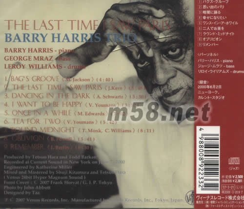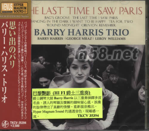 巴黎艷影(HI FI 爵士鋼琴三重奏)(m58.net) 爵士鋼琴大師BARRY HARRIS以三重奏演繹多首名曲,誘人的琴韻及懷舊的韻味留心底.浪漫的旋律帶出了真致的情懷.重新混音推出,HYPER MAGNUM SONUND的通透音色,現場感一流.