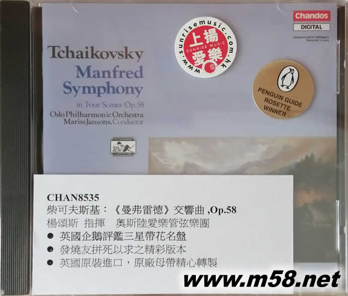 柴可夫斯基 曼弗雷德交響曲 TCHAIKOVSKY MANFRED SYMPHONY(m58.net) 楊頌斯 指揮 奧斯陸愛樂管弦樂團 英國企鵝評鑑三星帶花名盤 發(fā)燒友拼死以求之精彩版本 英國原裝進口,原廠母帶精心轉(zhuǎn)製 Tchaikovsky: Manfred Symphony, Op. 58