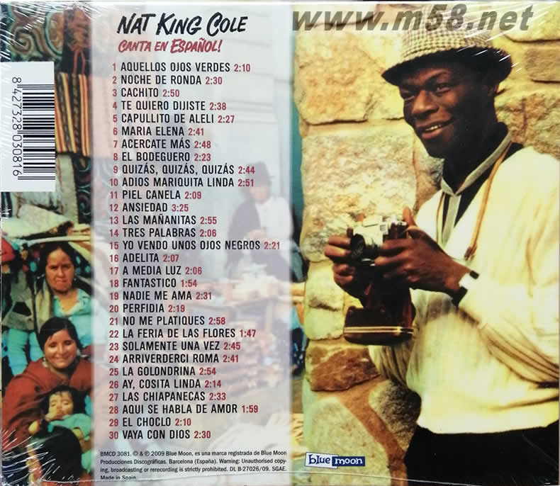 CANTA EN ESPANOL ! 西班牙全曲選(m58.net) 天鵝絨般聲音、拉丁奔放風味、Nat King Cole “en Espanol 1” 及 “Espanol 2” 合併精選,共30首西班牙或葡萄牙文單曲一碟收錄。在他的職業生涯高峰期,他到了西班牙等地作演唱會,所訪問過的這些國家,南美洲歌曲和拉丁音樂影響了他,回到洛杉磯后,開始進入錄音室,記錄他在里約熱內盧和墨西哥城的感受,即是這兩張著名專輯。