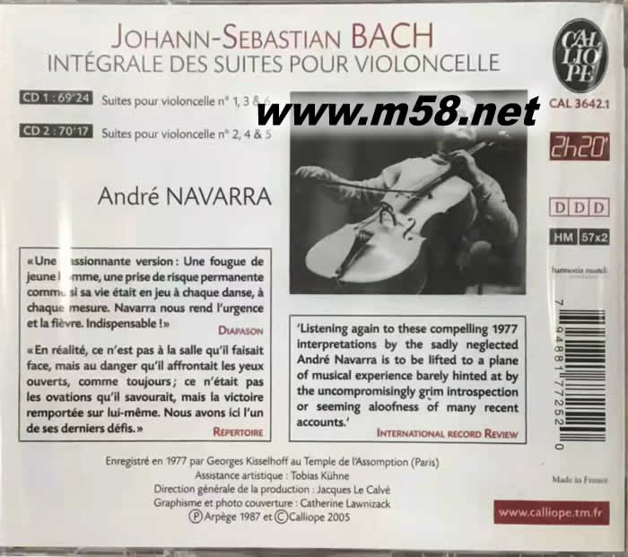 Bach: Cello Suites 巴赫 : 六首無伴奏大提琴組曲(全集)(m58.net) 全球少量老版庫存!!演錄俱佳的「窖藏級」銘盤; 錄製於1977年,巴黎 Temple de l'Assomption 教堂 法國宗師級人物傳世之作,下弓穩健,風格行云流水 獲法國“金音叉獎”(Diapason d'Or )和法國唱片大獎 法國原裝進口
