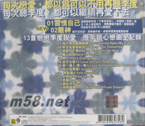 聽著她的全新作品〈習慣自己〉及〈眼神〉時依然給她的一把動人的聲音懾著。無可置疑的,李度擁有一把漂亮至極的聲音,可惜〈習慣自己〉的曲式又是那種老掉了牙的作品,作曲的潘協慶最近也沒有甚么力作,〈習慣自己〉亦只是他平庸不堪的作品而已。反觀周華健嘗試走出新路的〈眼神〉頗有新鮮感,算是不俗。接下來的便是李度的舊作品巡禮:〈舍不得把眼睛睜開〉、〈為愛犯了罪〉及〈難以抗拒〉都曾是臉炙人口的經典之作,至于〈明天我要嫁給你〉雖然已給很多很多的歌手翻唱過,但原來不說不知,李度便是其中一位原唱者。〈夠了〉、〈放手去愛〉、〈我只是需要〉中的她亦切切實實的把女性感情的觸覺暴露出來。可惜這次的精選唱片中沒有收錄李度的名曲〈我哭〉,那一種激動的情懷由李度的歌聲演繹出來時充滿感染的澎湃。這算是此張《尋他千百度》大碟中唯一美中不足之處。
