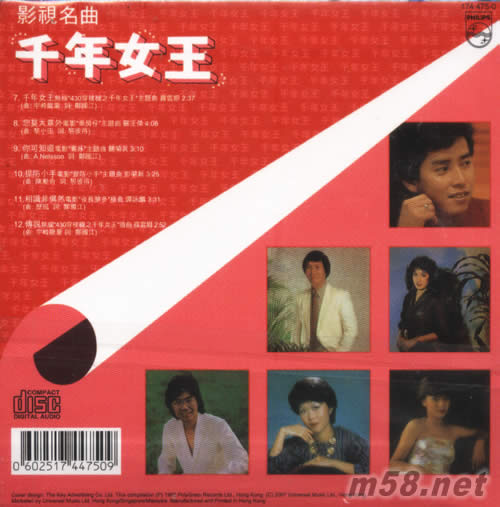 電視名曲 夜長夢多 1.夜長夢多 2.給我一個吻 3.為了你 4.細雨濃情 5.旭日 6.空想家 電視名曲 千年女王 7.千年女王 8.您莫太意外 9.你可知道 10.提防小手 11.相識非偶然 12.傳說