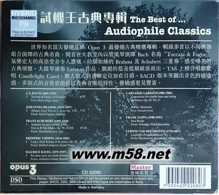試機(jī)王發(fā)燒古典專輯SACD OPUS 3 出品專輯背面圖片