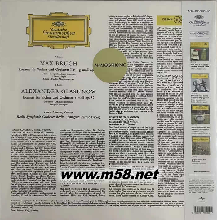20世紀世界小提琴大師中的女性先驅,上個世紀最迷人的女小提琴家艾麗卡.莫里尼以細膩的風格搭配弗里喬伊演奏布魯赫及格拉祖諾夫小提琴作品。180克黑膠。