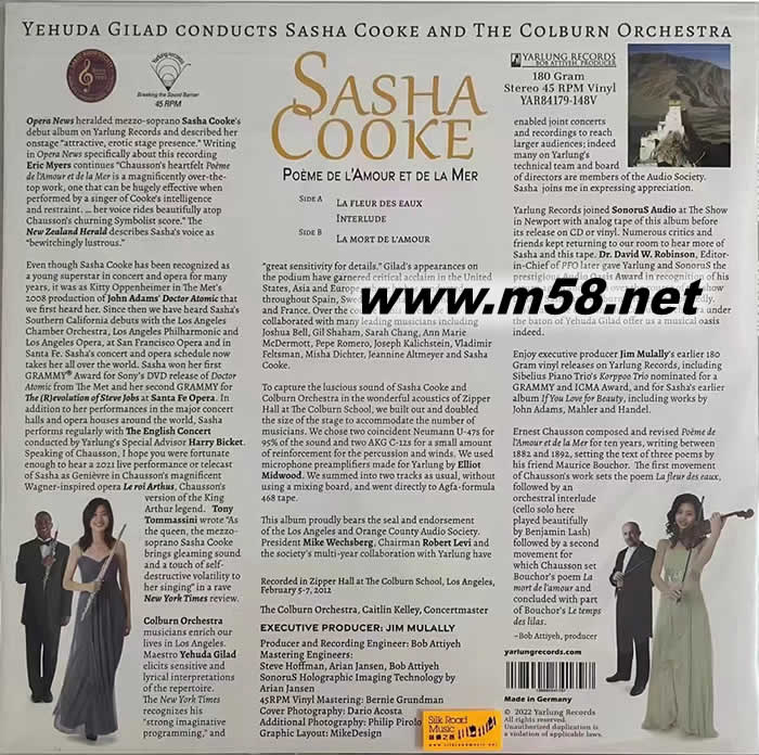 5. 本專輯的錄音在柯爾本音樂學院內擁有上佳聲效和設備,最受歡迎表演場地之一的「齊博演奏廳(Zipper Hall)」進行,並由國際知名錄音師史蒂夫·霍夫曼(Steve Hoffman)和鮑勃·阿蒂雅(Bob Attiyeh)擔任母帶后期處理,加上以180克45轉黑膠唱片為載體,無論音色與音效皆達致最高水平,是聲樂演唱示范盤之一。
