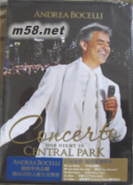 One Night In Central Park 紐約中央公園音樂會(DVD)(m58.net) Andrea Bocelli- 安德烈波伽利 New York Philharmonic紐約愛樂 One Night In Central Park 紐約中央公園音樂會 情歌天皇 Bocelli 全新紐約中央公園音樂會專輯 優質聲畫 ; 眾主星云集, 包括David Foster, Celine Dion, Tony Bennett, Bryn Terfel, Nicola Benedetti, Chris Botti, Nicola Benedetti, Andrea Griminelli, Ana Maria Martinez! 高清拍攝出這一場當時免費演出的音樂會, Bocelli唱出多首最受歡迎的歌曲精選。他與New York Philharmonic 合作已經不是第一次, 他們合作之間的火花會令人感到歡欣, 配上這個十分美麗而適合古典樂團演奏的地點Central Park Great Lawn, 絕對是一個送給紐約, 送給世界最好的一份禮物。