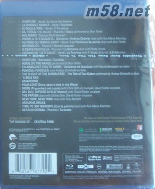 One Night In Central Park 紐約中央公園音樂會 藍光DVDBD背面圖片