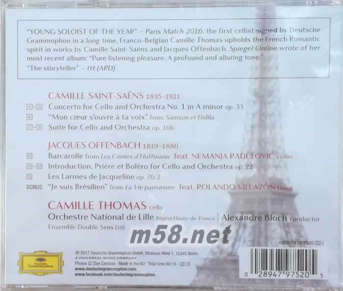 Enchantee Camille Thomas(40位大提琴家合輯)(m58.net) 40年來首位成為DGG廠牌下的大提琴家及Young Soloist of the Year” – Paris Match 2016的Camille Thomas個人大碟即將發行!
