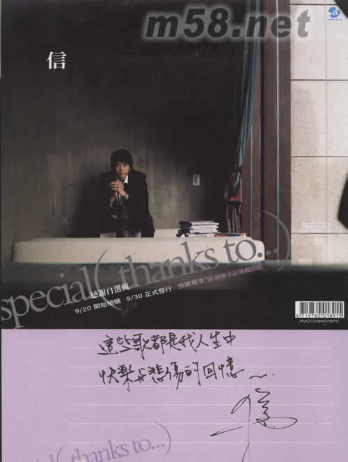 價格為估,以實到貨為準! 信(Special Thanks To... 感謝自選輯)(預購版)(m58.net) 加贈 信 親筆手記專屬信紙 昨天 音樂是他追求理想的信念 今天 他用歌唱 感謝一路以來相信他的每一個人 信樂團主唱信 首張個人感謝自選輯 收錄11首全新編曲國語經典+2005全新單曲