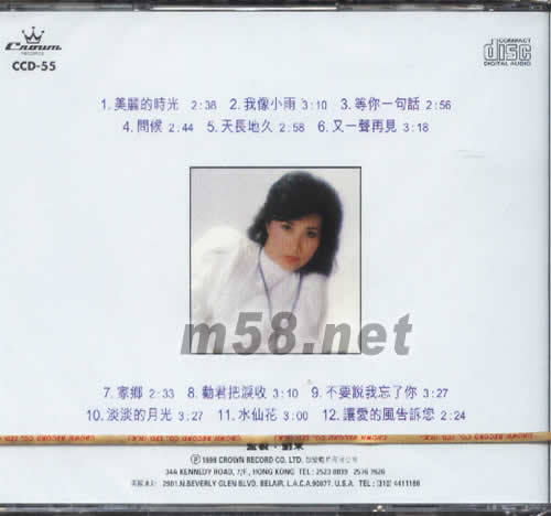 01 美麗的時光 02 我像小雨 03 等你一句話 04 問候 05 天長地久 06 又一聲再見 07 家鄉 08 勸君把淚收 09 不要說我忘了你 10 淡淡的月光 11 水仙花 12 讓愛的風告訴你