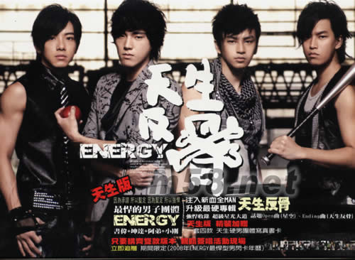 天生反骨(天生版)(m58.net) 臺灣男子演唱團體Energy出道五年,由2003年成員ToRo離隊,至2005年團長牛奶為了專注于舞蹈而退團,自去年三位成員書偉、坤達和阿弟推出《猩人類》,2007年Energy以全新面貌再度大展勁舞本色,加入新成員小剛,并以酷勁形象大耍《天生反骨》!全新專輯《天生反骨》收錄了10首情歌,包括了「天生反骨」、「上癮」、「鋼索」、「星空」和「萬有引力」。首波同名主打歌「天生反骨」是一首結合了新世代搖滾加上嘻哈Rap的酷歌,歌詞里完全反應出年輕人反抗既定成見的熱血反骨性格。 為了表現(xiàn)出搖滾節(jié)奏的力量,在「天生反骨」的舞蹈中,Energy融合了霹靂舞、新杰克搖擺、戰(zhàn)斗舞、電流和嘻哈,也有彼此互相挑釁和帶點戰(zhàn)斗意味的互動,甚至還有挑戰(zhàn)人體工學的全體倒立45度的高難度動作。為了配合「天生反骨」的酷勁,導演采用火來襯托反骨舞的酷勁,在棚里燒起一圈火,讓Energy在里面大跳反骨舞,此外還有旋轉火球和跨越火欄的場面。