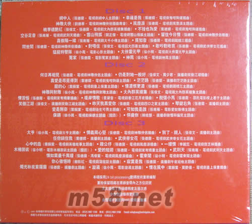 Disc 1 1. 網中人 2. 幸運是我 3. 神雕大俠 4. 風塵淚 5. 桃李透艷紅 6. 不捨也為愛 7. 空谷足音 8. 雪山飛狐 9. 留住今日情 10. 真假隔一線 11. 覓知音 12. 問世間 13. 對唔住 14. 歌吟動地哀 15. 猛龍特警隊 16. 大俠霍元甲 17. 冤家 18. 神鳳 Disc 2 1. 何日再相見 2. 仍是對她一般好 3. 真愛是尋覓得到 4. 茫茫路 5. 龍的心 6. 情濃恨更濃 7. 神雕與射雕 8. 大內群英續集 9. 情苦惱 10. 堤岸情歌 11. 脫彊小馬 12. 笑傲江湖 13. 昨天我真愛你 14. 琴鍵右角 15. 愛是無奈 16. 可知我是誰 17. 保鑣 18. 俘虜你 Disc 3 1. 大亨 2. 情義兩心堅 3. 別了 , 親人 4. 任你鎖住我 5. 武俠帝女花 6. 心中的血 7. 雞公仔 8. 一縷情 9. 木棉袈裟 (國語) 10. 愛的短箭 11. 武則天 12. 情如葉垂千萬縷 13. 霍東閣 14. 你心徹悟時 15. 寂寞是我 16. 燭光秋夜紫羅蘭 17. 漩渦 18. 情在風中