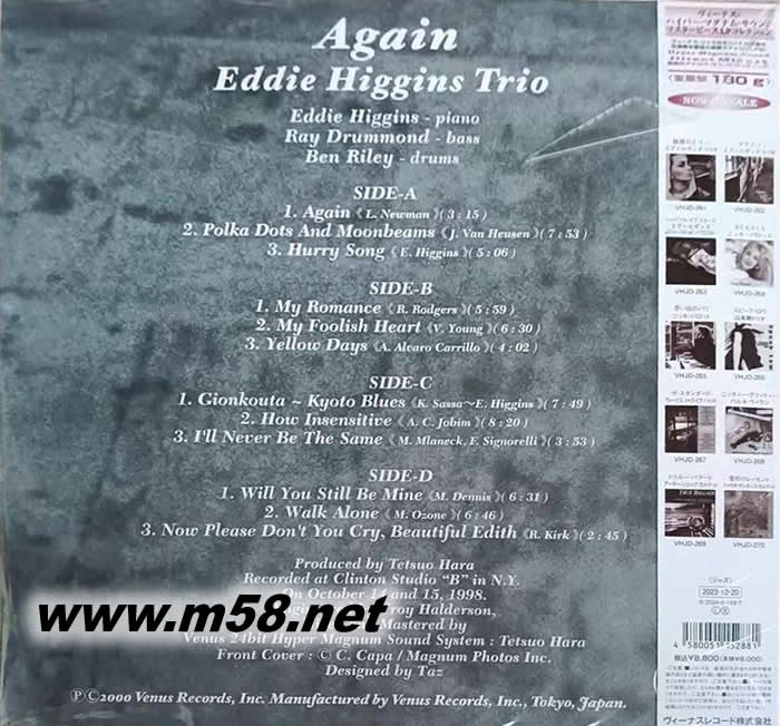 AGAIN (鋼琴、貝斯、鼓)爵士三重奏 出品180g 33RPM CC 黑膠(m58.net) EDDIE HIGGINS PIANO JAY LEONHART BASS JOE ASCIONE DRUMS