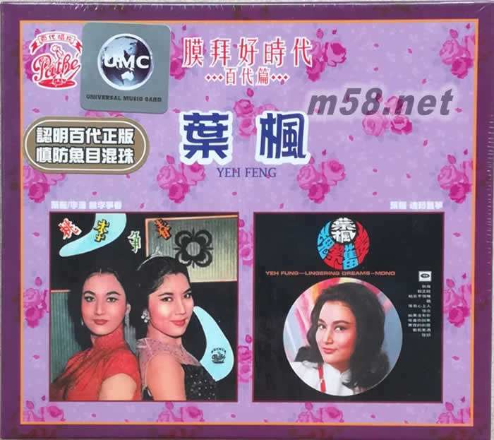 葉楓 桃李爭春 / 魂牽舊夢 [膜拜好時代之百代篇](m58.net) 清百代正版 品味架勢經典:《膜拜好時代》 眷戀的時代 醉人的音色 神話級偶像 EMI國語時代曲光輝重生 第二回 所有「膜拜好時代」2 in 1 CDset各附2張獨立專輯,內容完全獨立,各專輯小冊子20頁(或以上),刊有原錄音詳細資料、歌詞,部份更有當時代不同版本及設計的封面。全新文案特邀音樂評論人---Muzikland撰文,每碟不同,內容詳盡專精。