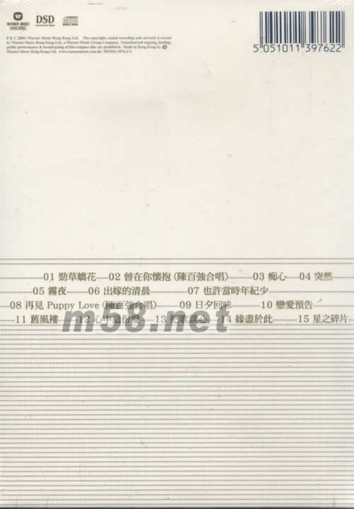 華納No.1系列 林姍姍(m58.net) 華納NO.1 發(fā)燒DSD CD系列共有: NO.1 曾路得 NO.1 林憶蓮 NO.1 蘇芮 NO.1 蔡琴 NO.1 林姍姍 NO.1 葉倩文 NO.1 陳潔靈 NO.1 陳百強 NO.1 夏韶聲 NO.1 呂方 NO.1 周啟生 NO.1 王杰 NO.1 林子祥 NO.1 BEYOND NO.1 太極