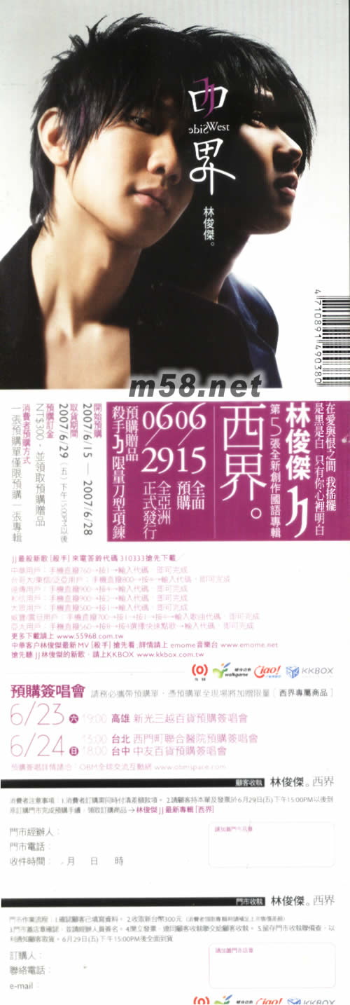 西界原版預購單(m58.net) 預購單尺寸:29*10CM 獨自訂購用信封郵寄 與碟一起訂購則與碟一起郵寄