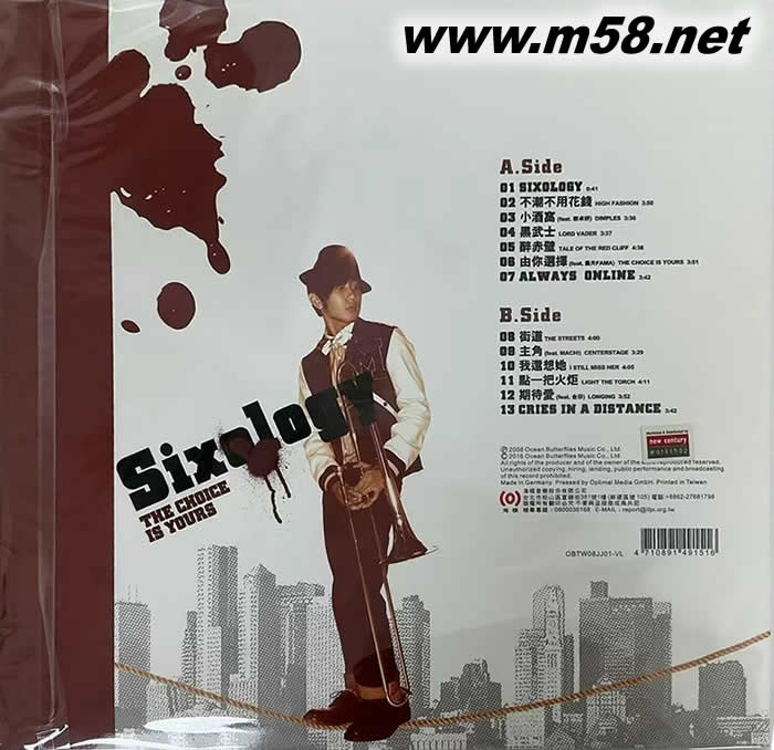 1. SIDE A Sixology (0.41) 2. 不潮不用花錢 (3.50) 3. 小酒窩 (3.36) 4. 黑武士 (3.37) 5. 醉赤壁 (4.38) 6. 由你選擇 (3.51) 7. Always Online (3.42) 8. SIDE B 街道 (4.00) 9. 主角 (3.29) 10. 我還想她 (4.05) 11. 點一把火炬 (4.11) 12. 期待愛 (3.52)