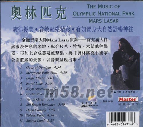 奧林匹克THE OLYMPIC NATIONAL PARKS SERIES 新世紀純音樂(m58.net) 奧林匹克 THE NATIONAL PARKS SERIES 美國國家公園系列專輯 美國國家公園專輯之四大自然浪漫色彩琴鍵、樂手多種電子樂器配合《奧林匹克》的景象,音樂氣魄宏大 旋律優(yōu)美·音效配樂精彩·有如置身大自然舒暢神往 全能音樂大師MARS LASAR演奏十一首充滿大自然浪漫色彩的琴鍵,配合尺八、竹笛、木結(jié)他等樂器,再加上合成器及敲擊樂,將《奧林匹克》國家公園莊嚴的影像,以音樂呈現(xiàn)出來。