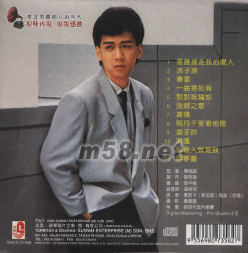 01. 是誰搶走我的愛人 02. 浪子淚 03. 春雷 04. 一曲寄知音 05. 默默祝福你 06. 故鄉之歌 07. 真情 08. 明月千里寄相思 09. 游子吟 10. 海邊 11. 那個人就是我 12. 尋夢園