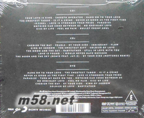 DISK 1 CD 1. Your Love Is King 1984年出道首支英國金榜TOP10單曲,電影「BJ單身日記:男人禍水」插曲 2. Smooth Operator 1985年全美首支熱門單曲榜TOP10,抒情榜雙週冠軍,1985年MTV音樂錄影帶獎兩項提名 3. Hang On To Your Love 1984年前進美國首支單曲,全美舞曲榜第5名,節奏藍調單曲榜第14名單曲 4. The Sweetest Taboo 1986年全美抒情榜冠軍,節奏藍調單曲榜第3名,熱門單曲榜第5名 5. Is It A Crime 出自1985年稱霸英、美排行冠軍專輯《Promise》 6. Never As Good As The First Time 1986年全美抒情榜第6名,節奏藍調單曲榜第8名,熱門單曲榜第20名 7. Jezebel 出自1985年稱霸英、美排行冠軍專輯《Promise》 8. Love Is Stronger Than Pride 1988年春季晉升法國流行單曲榜TOP40暢銷曲 9. Paradise 1988年全美節奏藍調單曲榜冠軍曲,抒情榜第3名,熱門單曲榜第16名 10. Nothing Can Come Between Us 1988年全美節奏藍調單曲榜第3名 11. No Ordinary Love 1994年葛萊美最佳節奏藍調樂團演唱獎得獎之作,全美節奏藍調單曲榜第9名單曲,電影「桃色交易」主題曲 12. Kiss Of Life 1992年全美節奏藍調單曲榜第10名,抒情榜第20名 13. Feel No Pain 出自1992年全美流行專輯榜第3名專輯《Love Deluxe》 14. Bullet Proof Soul 出自1992年全美流行專輯榜第3名專輯《Love Deluxe》 DISK 2 CD 1. Cherish The Day 全美舞曲榜第23名 2. Pearls 出自1992年全美流行專輯榜第3名專輯《Love Deluxe》 3. By Your Side 2002年葛萊美獎最佳流行女歌手提名之作,全美舞曲榜第2名,英國金榜第17名,HBO影集「慾望城市」第4季插曲 4. Immigrant 出自2002年葛萊美獎最佳流行演唱專輯《Lovers Rock》 5. Flow 出自2002年葛萊美獎最佳流行演唱專輯《Lovers Rock》 6. King Of Sorrow 出自2002年葛萊美獎最佳流行演唱專輯《Lovers Rock》 7. The Sweetest Gift 莎黛獻給英國致力於協助病童家庭的「彩虹信託兒童慈善基金組織」的動人之歌 8. Solider Of Love 2011年葛萊美最佳節奏藍調樂團演唱獎得獎之作,2010年全美爵士單曲榜3週冠軍曲 9. The Moon And The Sky 2010年全美爵士單曲榜第11名 10. Babyfather 2011年葛萊美獎最佳流行樂團演唱提名之作,全美爵士單曲榜第10名 11. Still In Love With You 重新詮釋愛爾蘭國寶級重金屬樂團Thin Lizzy作品 12. Love Is Found 2011年全新創作曲 13. I Would Never Have Guessed 2011年全新創作曲 14. The Moon And The Sky (Remix Feat. Jay-Z) 嘻哈巨星杰斯跨刀獻唱的暢銷曲混音版 15. By Your Side (Neptunes Remix) 葛萊美獎製作組合海王星操盤混音的暢銷曲 DISK 3 DVD 1. Hang On To Your Love 2. The Sweetest Taboo 3. Is It A Crime 4. Never As Good As The First Time 5. Love Is Stronger Than Pride 6. Paradise 7. Turn My Back On You 8. Nothing Can Come Between Us 9. No Ordinary Love 10. Feel No Pain 11. Kiss Of Life 12. Cherish The Day 13. By Your Side 14. King Of Sorrow 15. Solider Of Love 16. Babyfather
