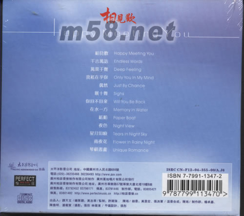 01. 相見歡 Happy Meeting You 02. 千言萬語 Endless Words 03. 萬葉千聲 Deep Feeling 04. 我只在乎你 Only You In My Mind 05. 偶然 Just By Chance 06. 嘆十聲 Sighs 07. 你回不回來 Will You Be Back 08. 在水一方 Memory In Water 09. 紙船 Paper Boat 10. 夜色 Night View 11. 星月淚痕 Tears In Night Sky 12. 雨夜花 Flower In Rainy Night 13. 琴棋書畫 Unique Romance
