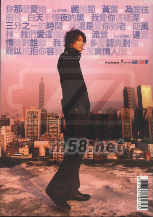 1.你那么愛她 2.藏經格 3.黃葉 4.為愛往前飛 5.白天不懂夜的黑 6.我愛你這樣深 7.三分之一的時間 8.我還是愛你到老 9.防風林 10.我們愛這個錯 11.流言 12.這愛情誰對誰錯 13.我是 14.難以抗拒你容顏 15.落寞情人街