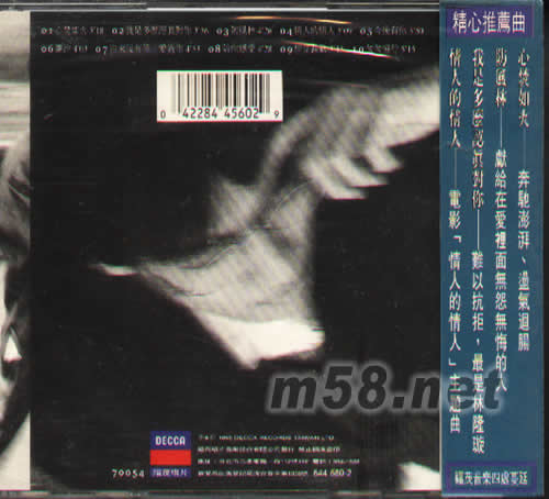 精心推薦曲:心焚如火 ----奔馳澎湃 蕩氣回腸 防風(fēng)林---獻(xiàn)給在愛里面無怨無悔的人 我是多么認(rèn)真對(duì)你----難以抗拒,最是林隆璇 情人的情人---電影[情人的情人]主題曲