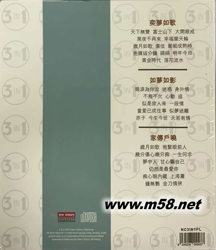 價格為估,以實到貨為準! 香港樂壇寶典 如夢 奕夢如歌 如夢如影 家傳戶曉 3CD套裝(m58.net)