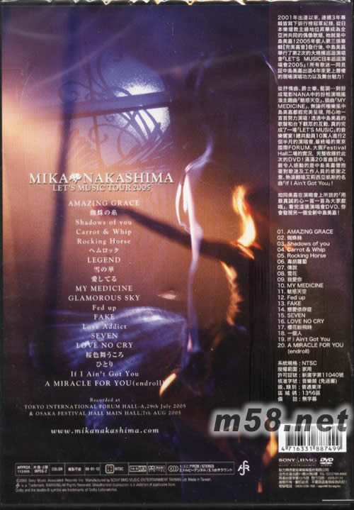 LET'S MUSIC TOUR 2005演唱會DVD(m58.net) 113分鐘 全力推介:雪之華/GLAMOROUS SKY[電影NANA-世上的另一個我]主題曲/櫻花紛飛時/ROCKING HORSE/ MIMEDICINE與及重新演譯ALICIA KEYS名作IF I AIN'T GOT YOU 等共十九首現場精彩演出作品
