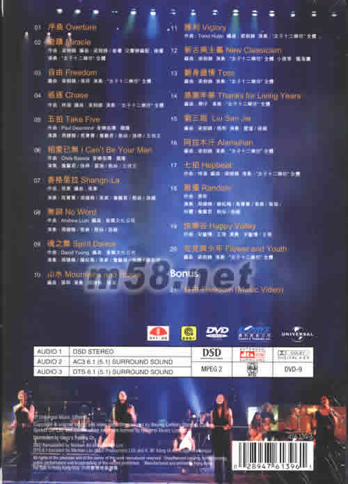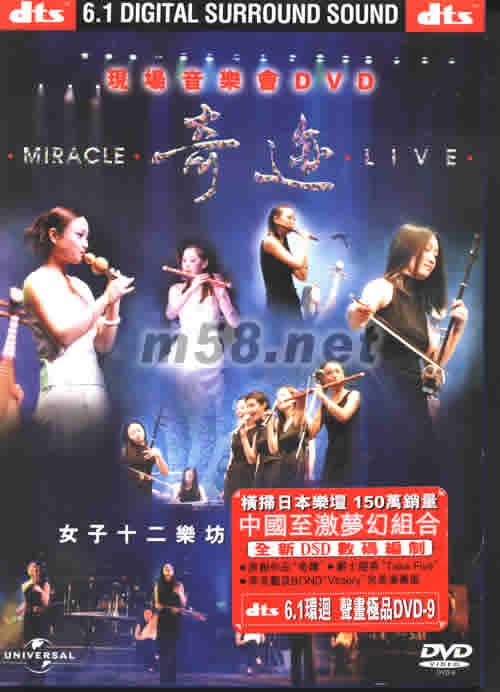 價(jià)格為估,以實(shí)到貨為準(zhǔn)! 奇跡 現(xiàn)場音樂會DVD(m58.net) 橫掃日本樂壇150萬銷量! 中國至激夢幻組合 原創(chuàng)作品“奇跡” 爵士經(jīng)典“TAKE FIVE” 李克勤及BONUS VICTORY完美演奏版 送BONUS主打歌“自由”MV DTS6.1環(huán)回聲畫極品DVD-9