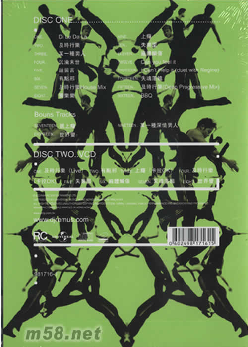 1、DELE DALA 2、及時行樂 3、某一種男人 4、沉倫末世 5、請留言 6、有點邪 7、及時行樂HOUSE MIX 8、獨樂樂 9、上癮 10、失樂園 11、遍體鱗傷 12、CAN YOU FEEL IT 13、I CAN‘T HELP IT 14、失魂落魄 15、及時行樂DEEP PROGRESSIVE MIX 16、BBQ Bouns Tracks 17. 跳上癮 18. 世界變 19. 某一種深情男人 VCD 1、及時行樂(LIVE) 2、有點邪 3、上癮(卡拉OK) 4、及時行樂(卡拉OK) 5、失樂園 6、遍體鱗傷 7、失魂落魄 8、世界變