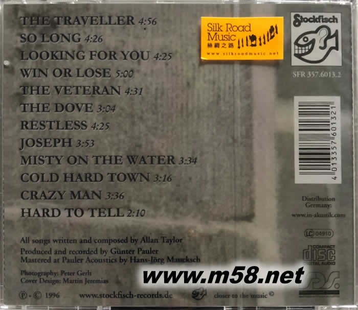 尋找你的身影LOOKING FOR YOU 劉漢盛推介(m58.net) 阿倫泰勒(Allan Taylor)-《尋找你的蹤影》 阿倫泰勒在老虎魚唱片公司(Stockfish Records)首張錄制發行的唱片。這里有美國木吉他高手克里斯.鐘斯、安迪.艾文和艾伯哈德.韋伯的精彩搭檔,全張CD首首扣人心弦。