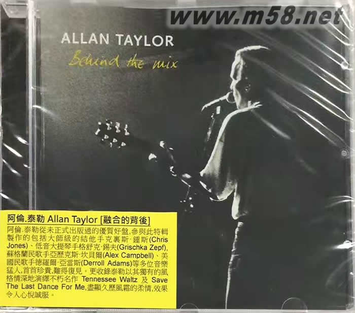 融合的背后Behind the Mix 民謠(m58.net) Allan Taylor(guitar & vocals)、 Chris Jones (guitar)、Grischka Zepf (bass)、 Alex Campbell (vocal)、Derroll Adams(vocal) 1. 2000年阿倫•泰勒(Allan Taylor)的專輯[為月亮添上色彩(Colour To The Moon)]初度出版時是以木盒2CD套裝推出,包括主題[為月亮添上色彩(Colour To The Moon)]和另一CD[融合的背後(Behind The Mix)],極受樂迷歡迎。此套裝在市場售罄後,「老虎魚(Stockfisch)」只有將[為月亮添上色彩]這主題專輯以單CD繼續出版而[融合的背後]因為只是這專輯套裝的附贈盤,所以再版時並沒有再附加此CD,但因此CD內的歌曲精彩萬分,可媲美主題專輯,在過往的十數年,不少樂迷不斷要求再次出版此令人念念不忘的優質好盤,這正是[融合的背後]正式以個別專輯出版的主要原因。 2. 參與此特輯製作的包括大師級的結他手克裏斯•鍾斯(Chris Jones)和低音大提琴手格舒克•錫夫(Grischka Zepf),他倆擁有極為優秀的演奏技巧,曾為自己及其他藝人創造出多個經典錄音,備受專重,與泰勒的合作更是如魚得水,締造另一經典。 3. 泰勒亦有其他好友參與特輯內個別歌曲的製作,這包括著名蘇格蘭民歌手亞歷克斯•坎貝爾(Alex Campbell)主唱的「When I Paint My Masterpiece(當我繪畫我的經典傑作)」,美國民歌手德羅爾•亞當斯(Derroll Adams)則唱出另一經典「Memories(記憶)」及和泰勒合唱了他的首本名曲「波特蘭市(Portland Town)」和另外兩首他的名作,首首珍貴,難得復見。 4. 泰勒以其獨有的風格情深地演繹不朽名作「Tennessee Waltz(田納西華爾滋)」及「Save The Last Dance For Me(把最后一支舞留給我)」,盡顯久歷風霜的柔情,效果令人心悅誠服。