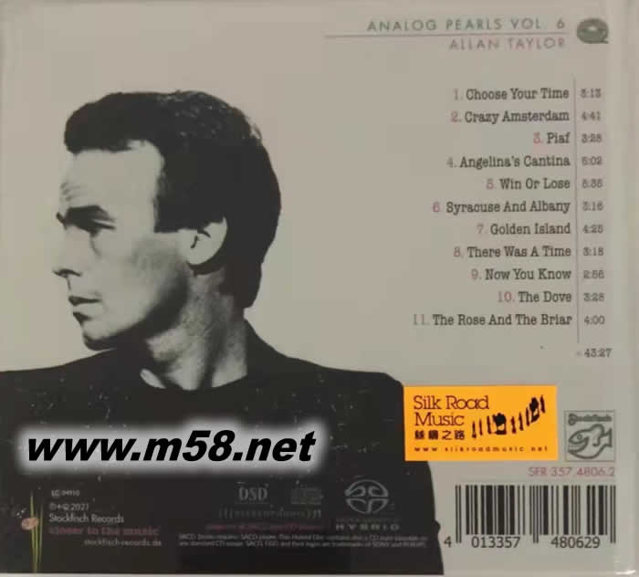 模擬的魅力「黑珍珠」系列第六輯 贏與輸 [Win or Lose]Analog Pearls Vol. 6 SACD(m58.net) 1. 被譽(yù)為吟游詩(shī)人及完美唱作天皇的阿倫.泰勒(Allan Taylor)以其沉實(shí)雄渾,感性中帶著風(fēng)霜的聲線征服了無(wú)數(shù)樂(lè)迷,配合冼煉的歌唱技巧,被視為「發(fā)燒男聲」之翹楚,雄視樂(lè)壇超越五十年。 2. 泰勒與發(fā)燒錄音名牌「老虎魚(Stockfisch Records)」合作達(dá)二十五年,共同創(chuàng)造出多個(gè)使樂(lè)迷津津樂(lè)道的經(jīng)典專輯,是高質(zhì)素美樂(lè)錄音的保証。泰勒在其音樂(lè)旅程穩(wěn)定基石后的初期,曾於一九八四年親自以模擬錄音方式(analog recording)製作專輯《Win Or Lose (贏取或輸?shù)?》,在當(dāng)時(shí)出版后無(wú)論是歌曲的動(dòng)聽性,他唱功的表現(xiàn)和錄音效果皆獲得好評(píng)如潮。他為了與「老虎魚」的合作達(dá)入新的里程碑,與錄音大師古達(dá)‧普勒(Günter Pauler)商討,由泰勒提供這專輯的原裝模擬母盤,而普勒採(cǎi)用最新的技術(shù)和器材加以復(fù)修和改良使整體音效得以提升后再作出版,使更多樂(lè)迷能有機(jī)會(huì)欣賞泰勒在風(fēng)華正茂時(shí)令人回味無(wú)窮的歌聲和令人讚嘆不已的指彈技術(shù)。 3. 專輯內(nèi)的十一首歌曲全是泰勒的精心杰作,由他親自演繹更為傳神,配合多位當(dāng)時(shí)能獨(dú)當(dāng)一面的音樂(lè)人絲絲入扣的演奏緊密地配合,每首樂(lè)曲皆以賞心悅耳的形態(tài)展現(xiàn),將他獨(dú)有的魅力詮釋得淋漓盡致。 4. 普勒製作的母盤使原有音色得以保存時(shí)亦加以潤(rùn)飾,無(wú)論是人聲或樂(lè)器聲的原來(lái)音色得已原汁原味地寄存。現(xiàn)以金屬直刻母盤(Direct Metal Master),180克處女黑膠盤為載體,原來(lái)音源的模擬音色更為清麗飽滿,樂(lè)器音質(zhì)厚實(shí),線條分明,人聲細(xì)致真實(shí),是愛好聆聽模擬錄音者另一必備之選。